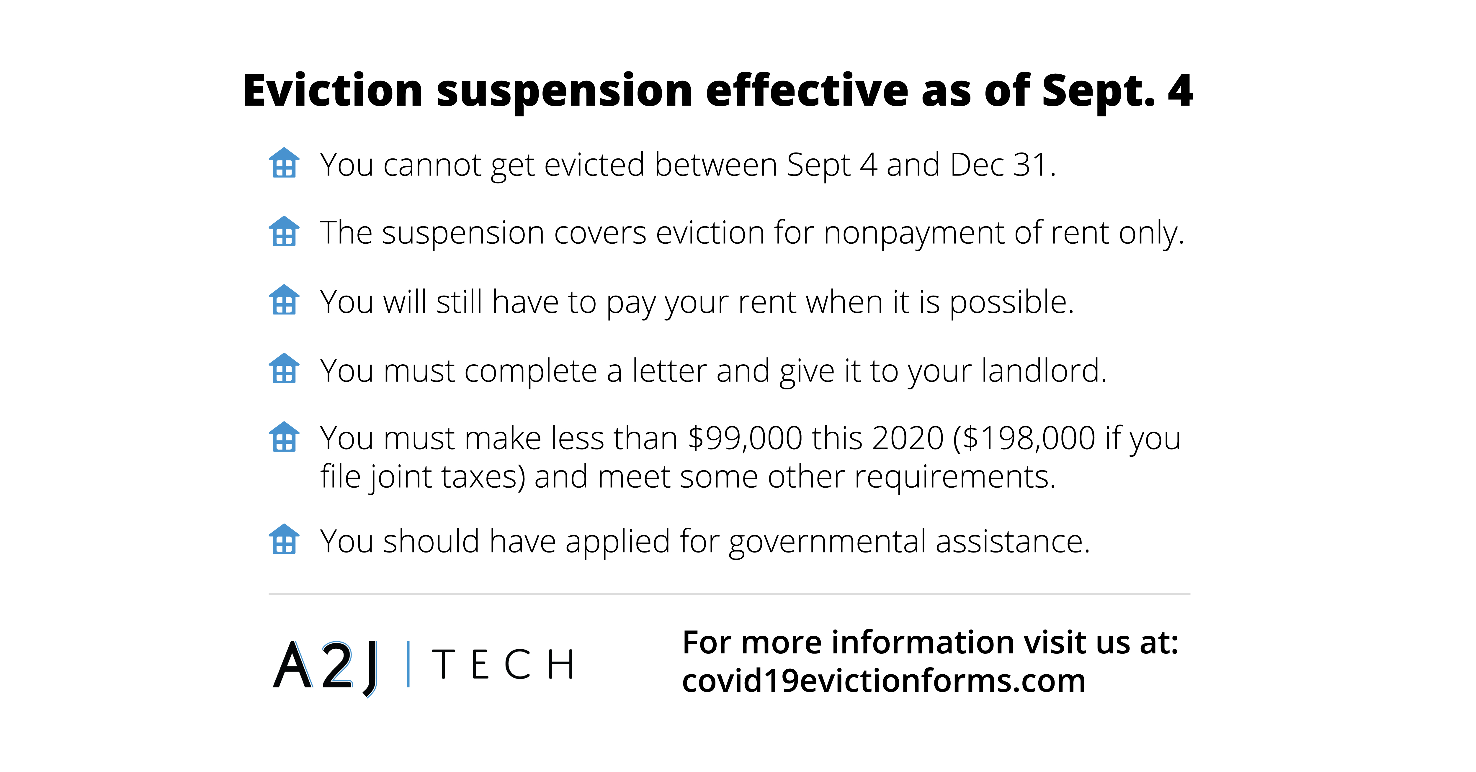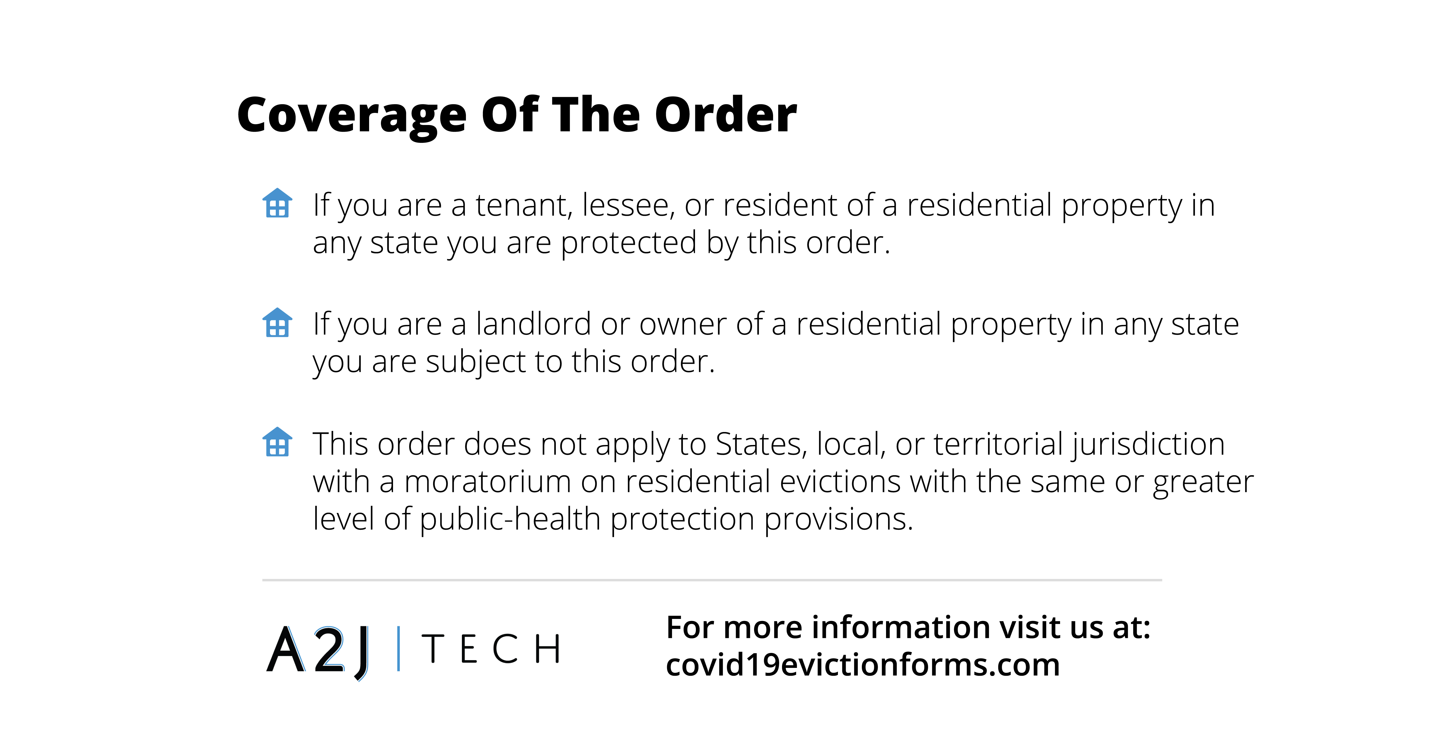 Since only 13 states have an eviction moratorium, the eviction moratorium is likely eligible to be used in your state. Additionally, the CDC's language may allow tenants in states with eviction moratoriums less protective than the CDC’s to use the declaration. We at A2J Tech are also actively tracking the expiration date of statewide moratoriums.